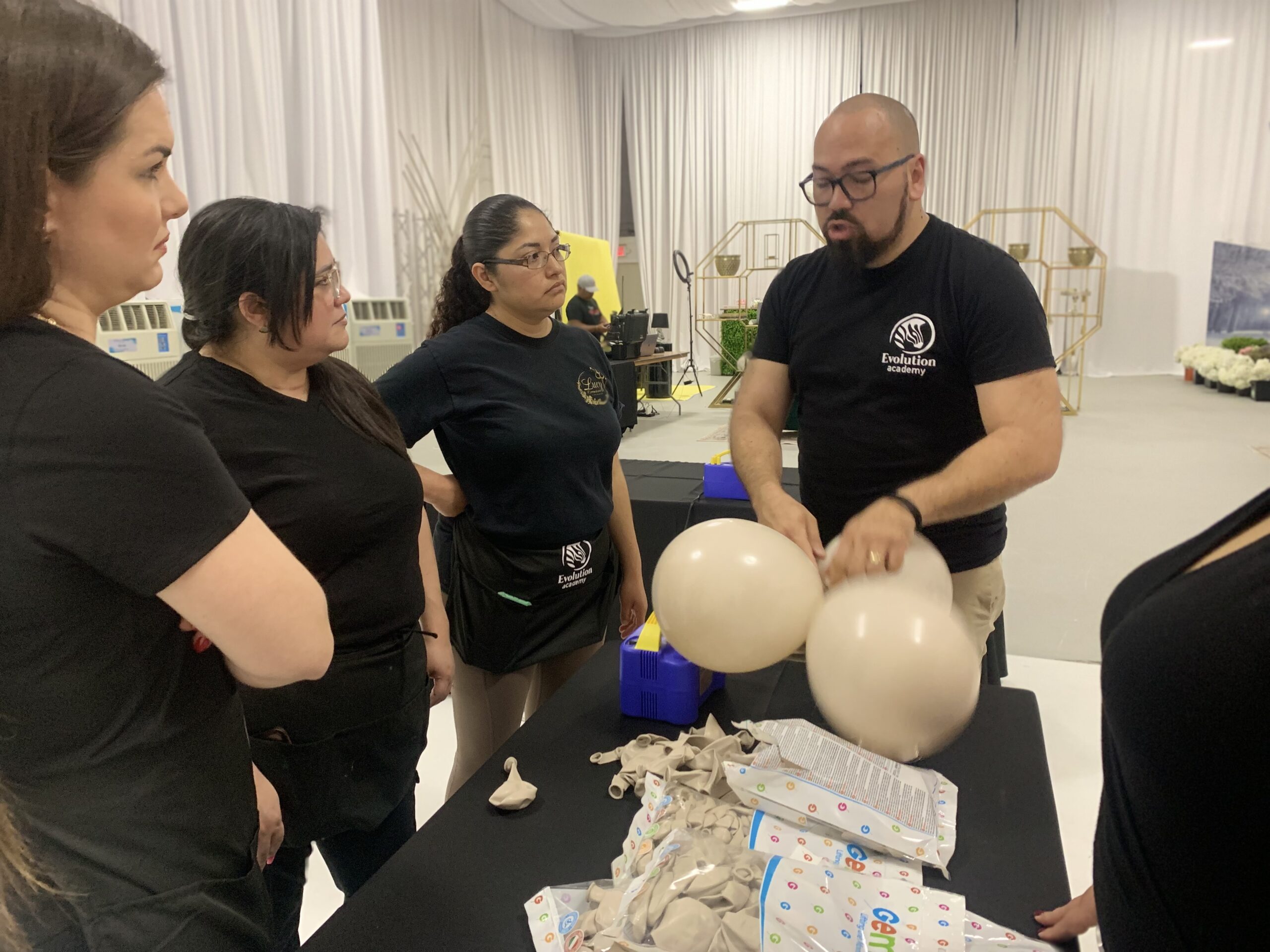For this Gemar USA balloon training in Miami, more than 2,000 Gemar balloons were provided to ensure every attendee could practice and experiment freely. The event was organized by Nelson Gonzalez from Evolution Academy and instructed by Maria Virginia Navarro from Balloons Atelier by Mayi. Together, they created an inspiring space where learning met creativity, and everyone felt encouraged to grow as professionals.