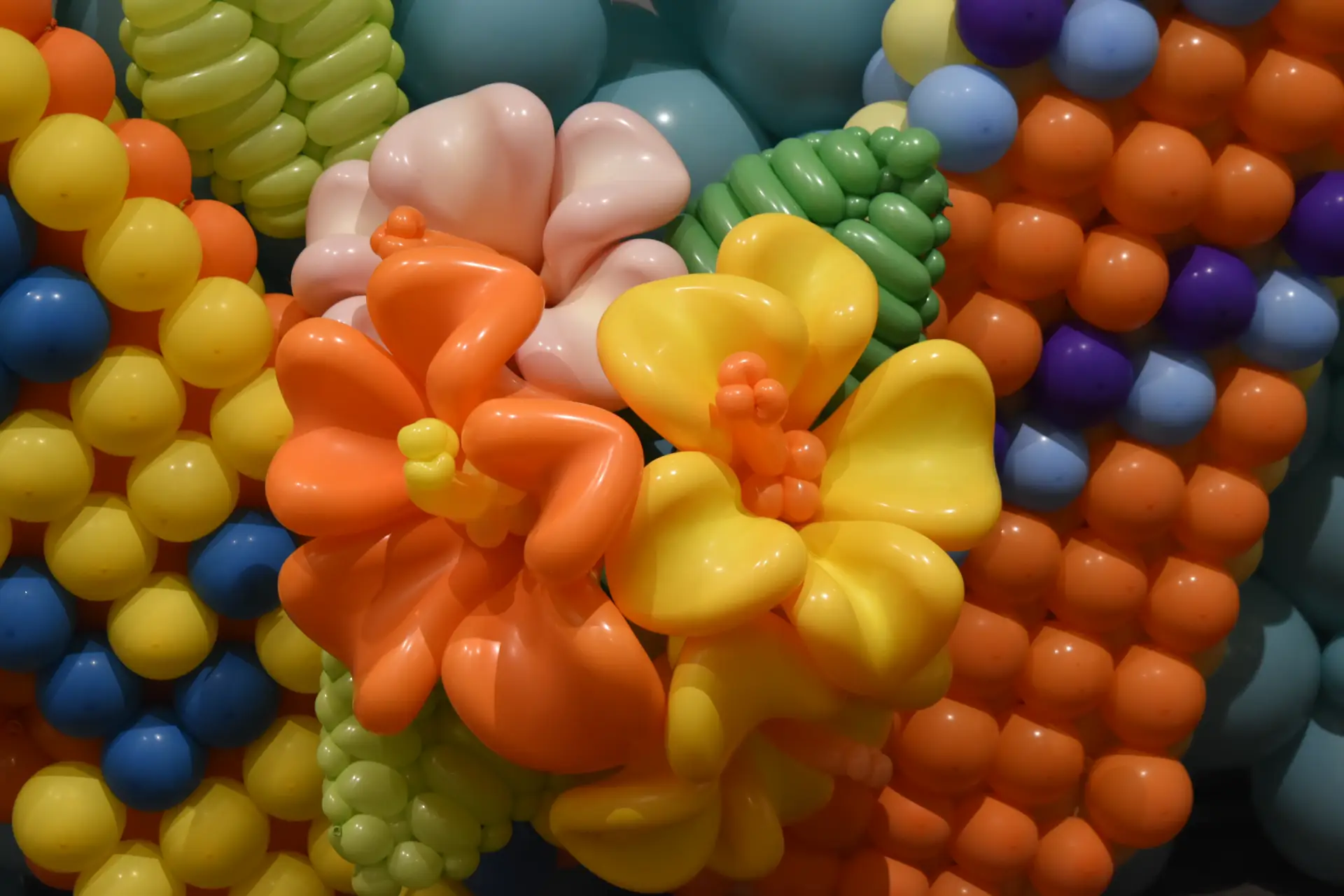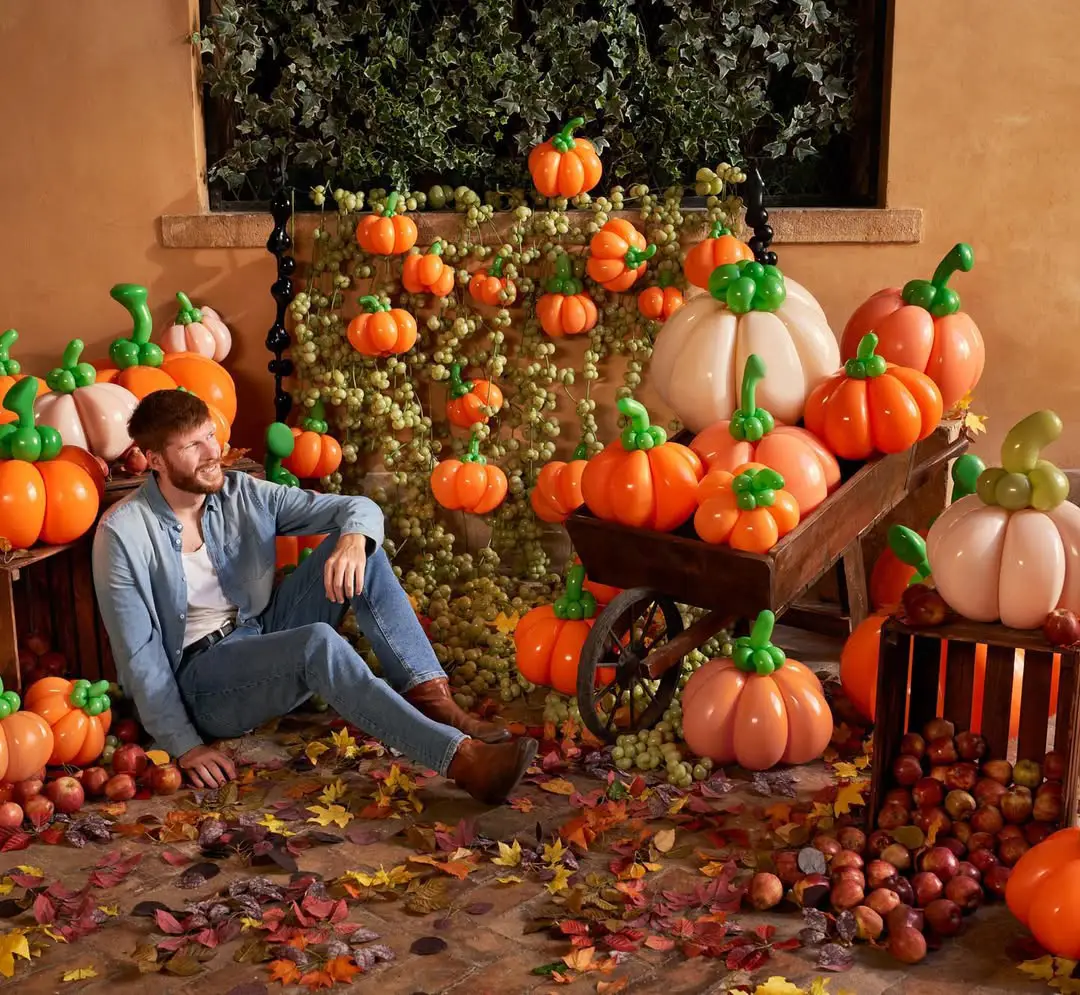 Orange balloons in real decorations