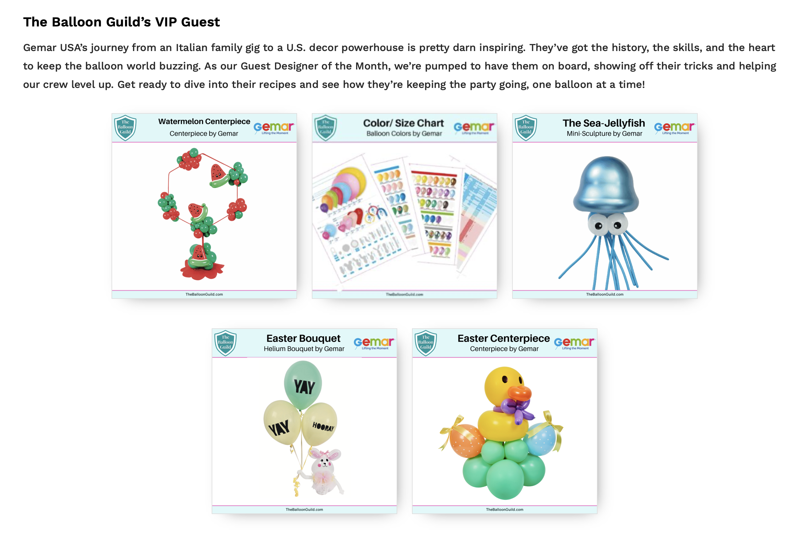 One of the most exciting elements of this collaboration is the launch of monthly balloon design recipes by Gemar, exclusively for The Balloon Guild community.